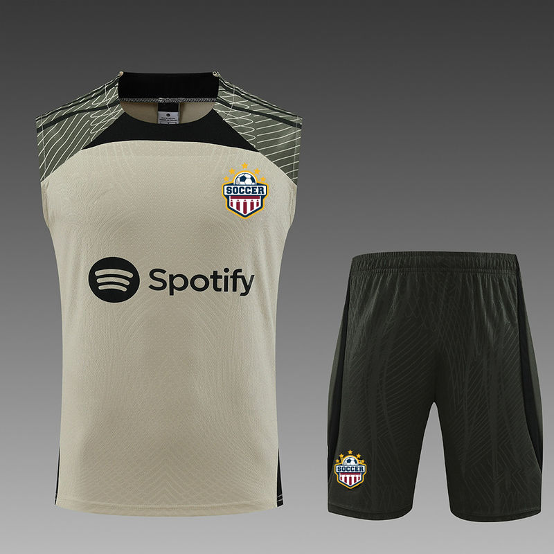 Дизайн жилета: тренировочный жилет имеет элегантный белый цвет, который излучает изысканность.гордо демонстрируя наследие и традиции клубаКостюм имеет стильный и современный дизайн, отражающий культовый стиль Барселоны.